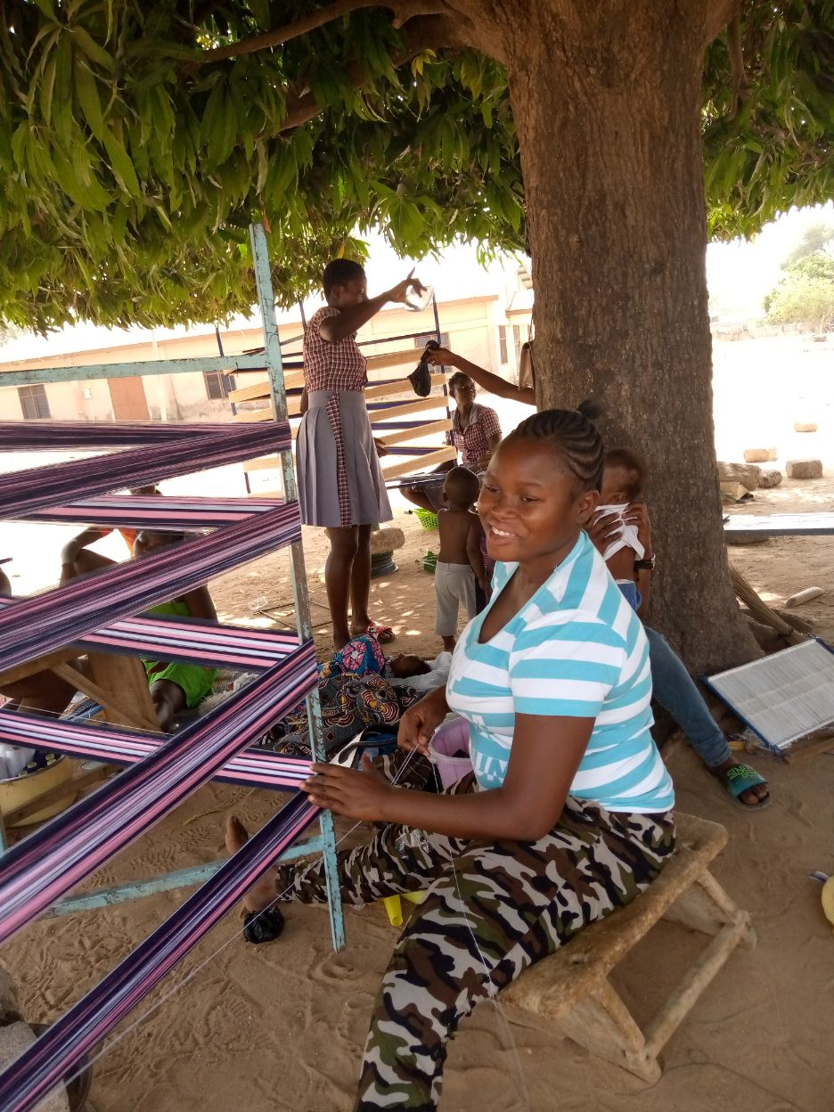 Reading with cloth weavers and dressmakers in Sumbrungu, Ghana